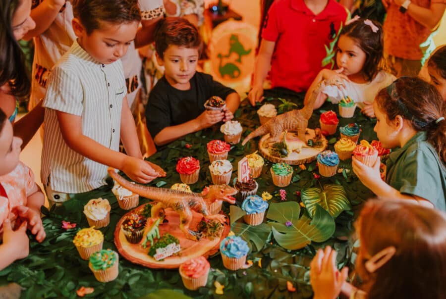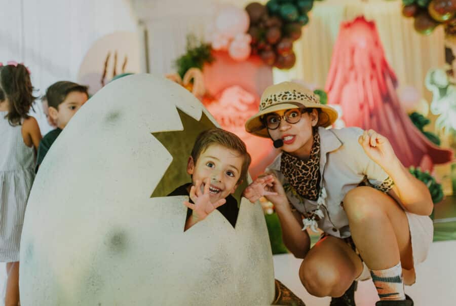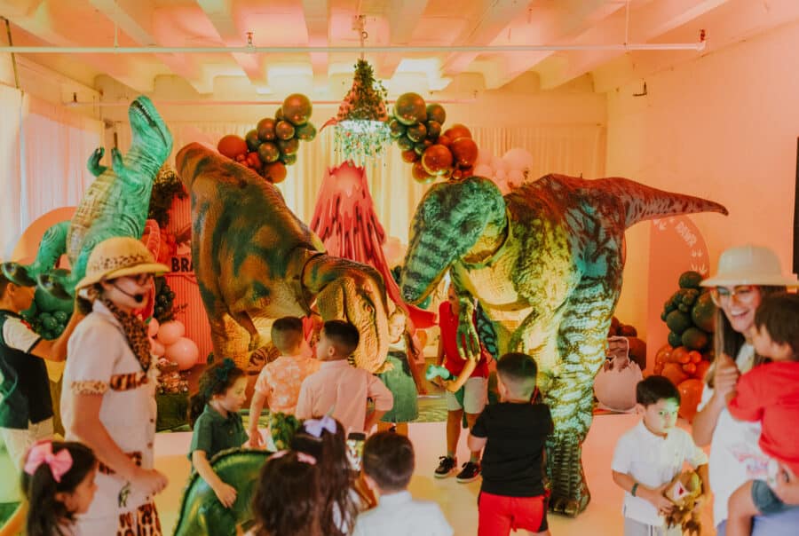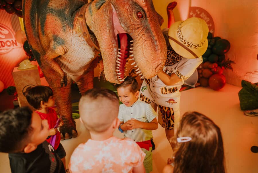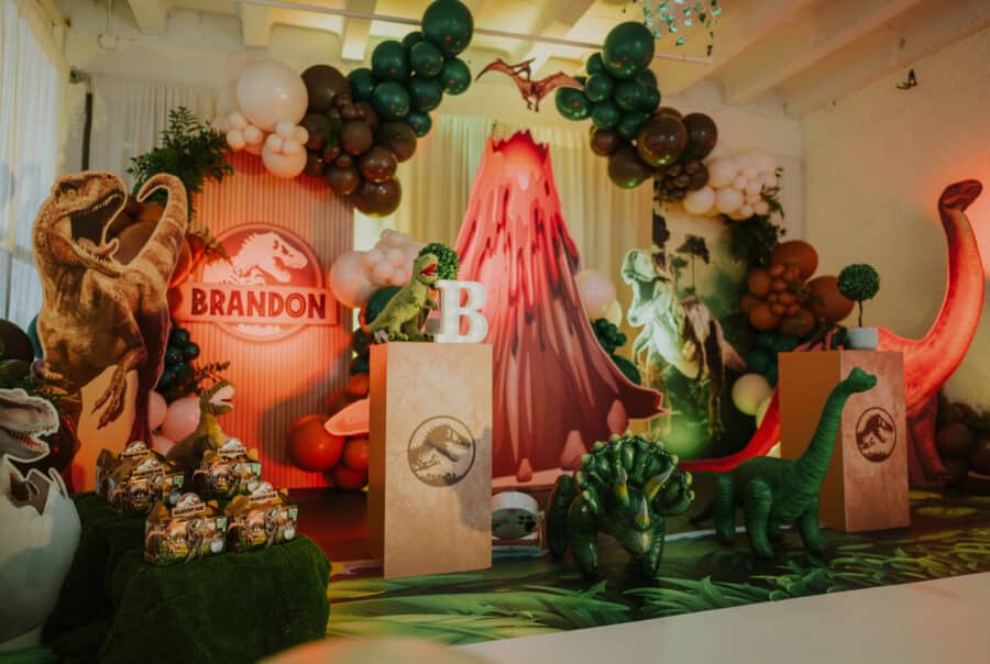 This Jurassic-themed children’s birthday party was an adventurous and thrilling celebration that transported the young guests to the land of the dinosaurs. From the moment they arrived, the kids were immersed in a prehistoric world with towering dinosaurs, jungle features, and exciting activities that sparked their imaginations.